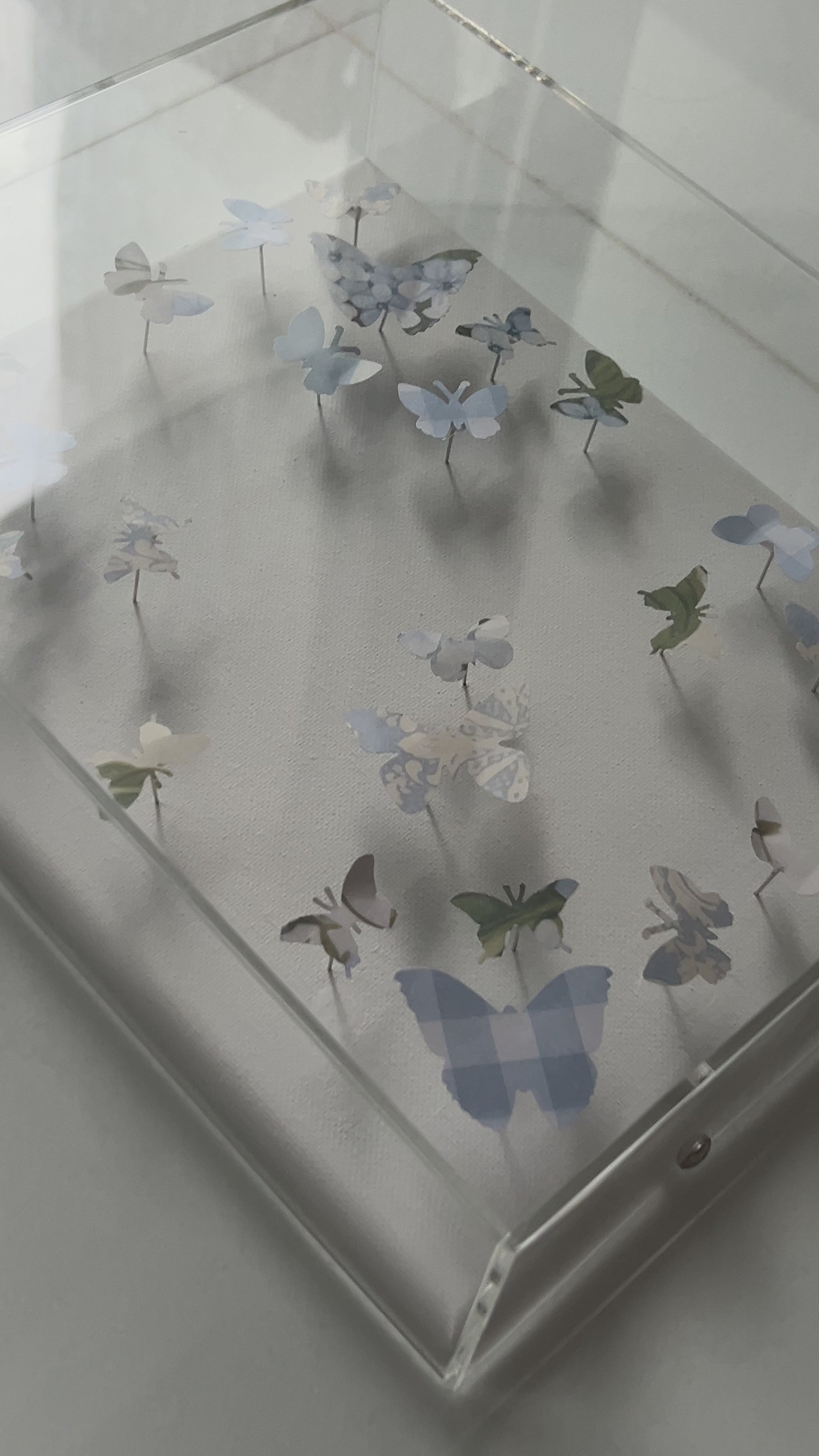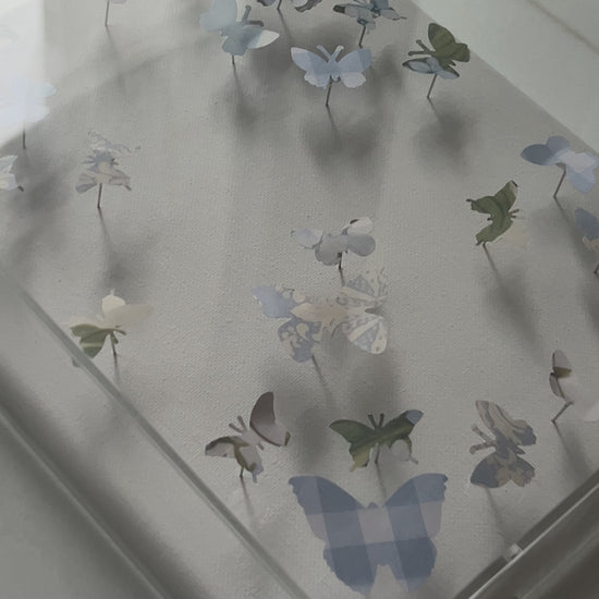 An 8x10 butterfly display from the Coastal Collection, encased in a polished acrylic frame. Each piece is a limited edition, made to order. Please allow 4–6 weeks for shipping.