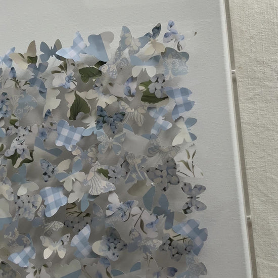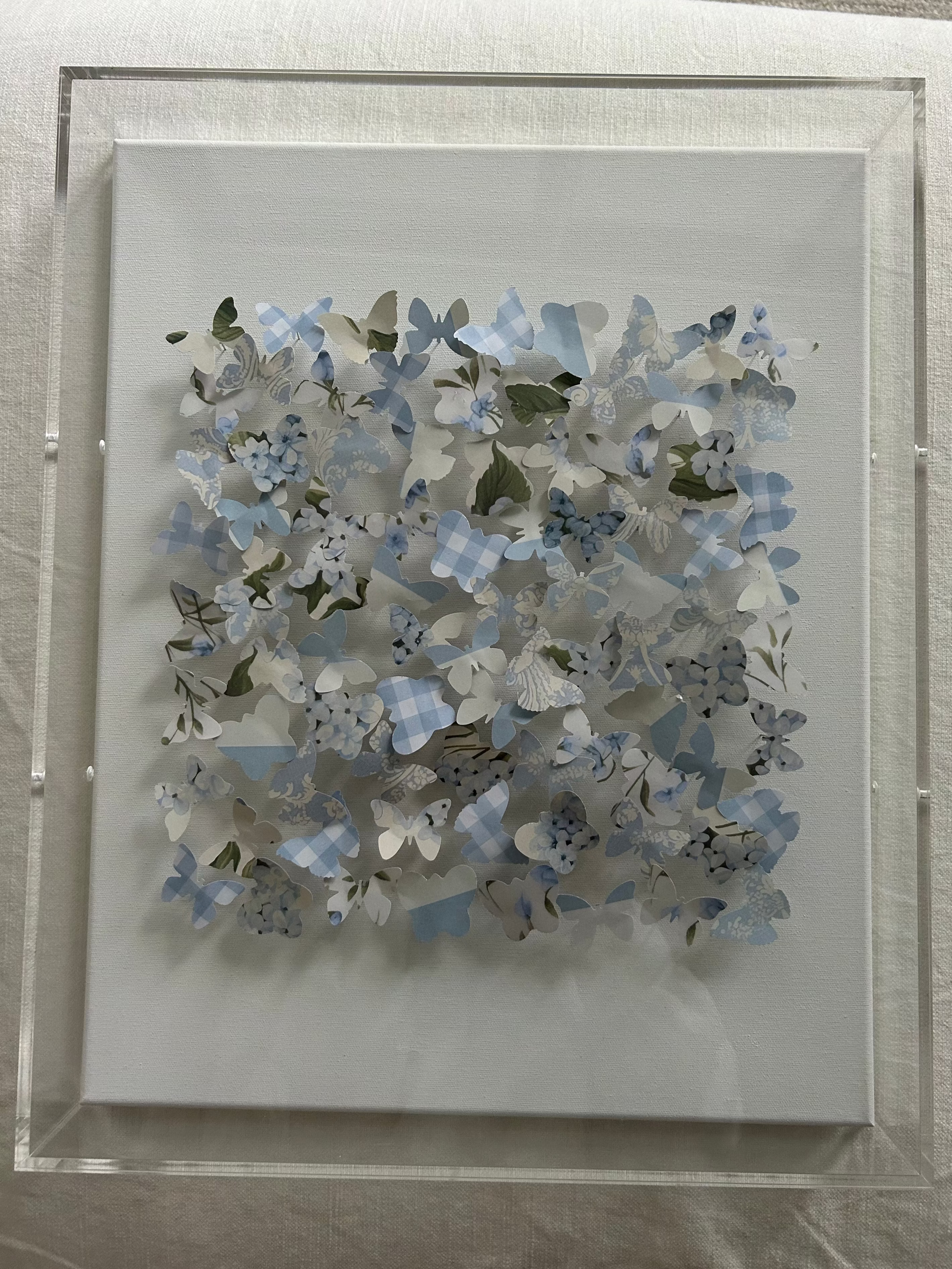 A 16x20 butterfly display from the Coastal Collection, encased in a polished acrylic frame. Each piece is a limited edition, made to order. Please allow 4–6 weeks for shipping.