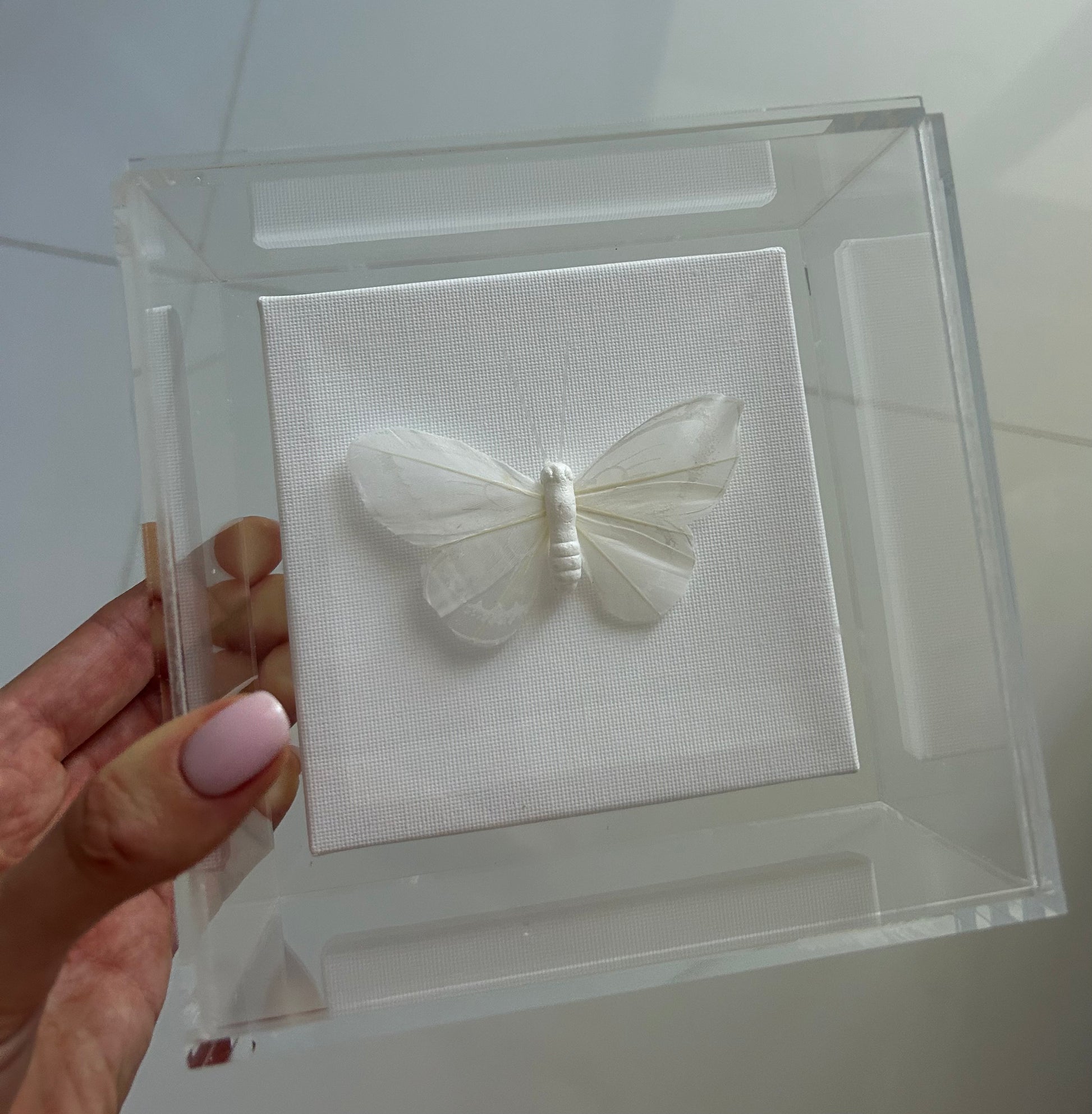 A 6x6 butterfly display from the Holiday Collection, encased in a polished acrylic frame. Each piece is a limited edition, made to order. Please allow 4–6 weeks for shipping.