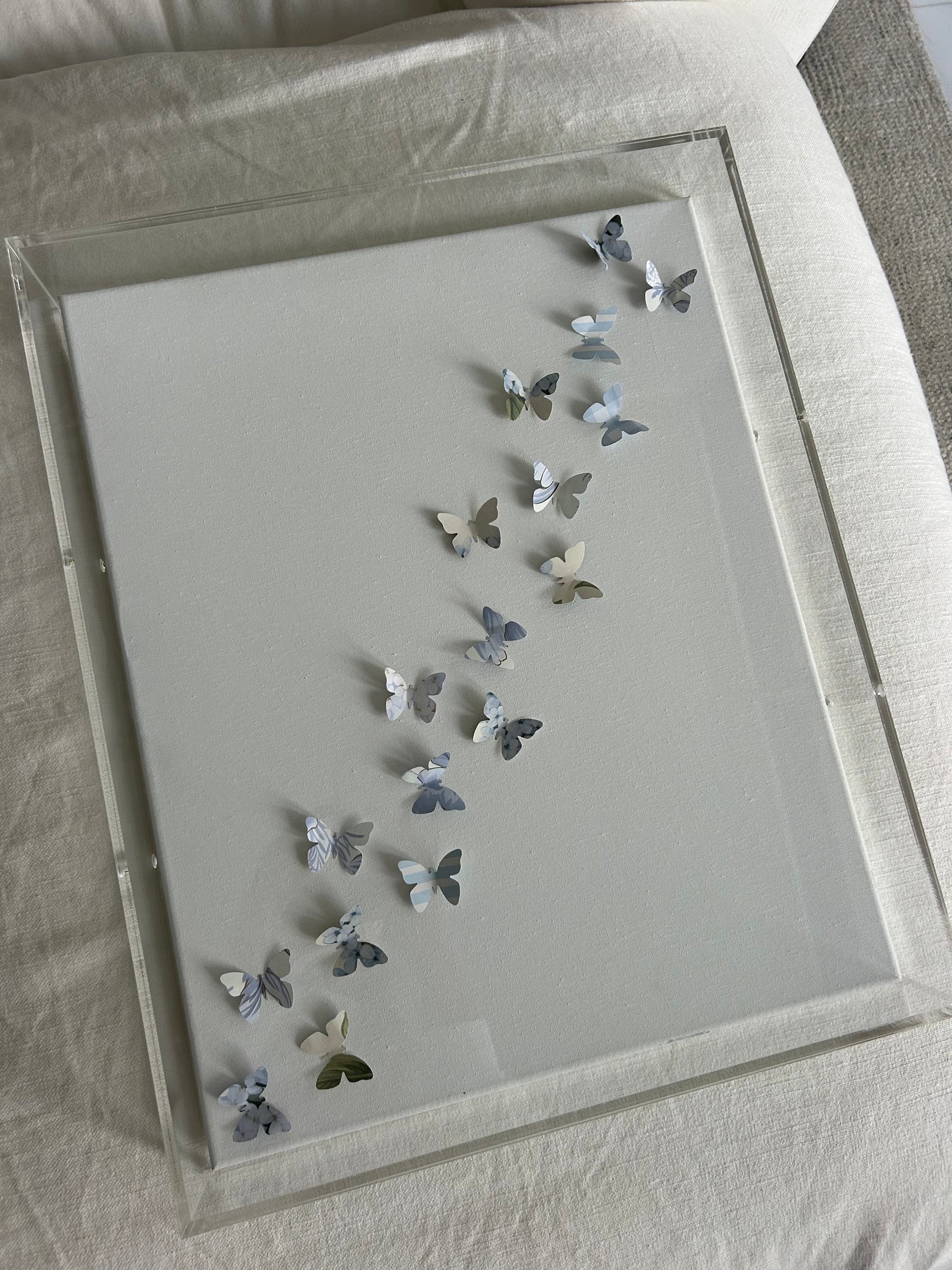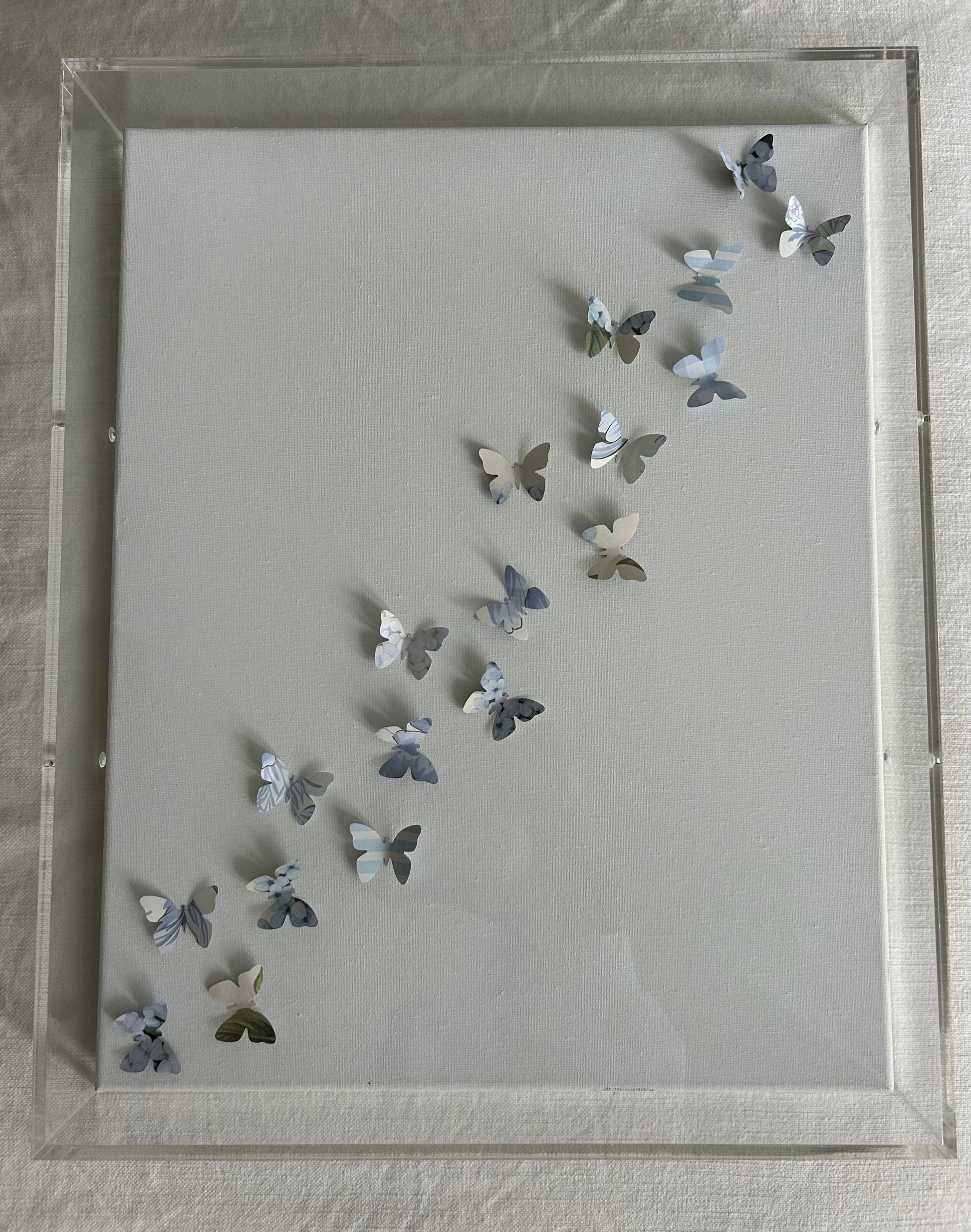 A 16x20 butterfly display from the Coastal Collection, encased in a polished acrylic frame. Each piece is a limited edition, made to order. Please allow 4–6 weeks for shipping.