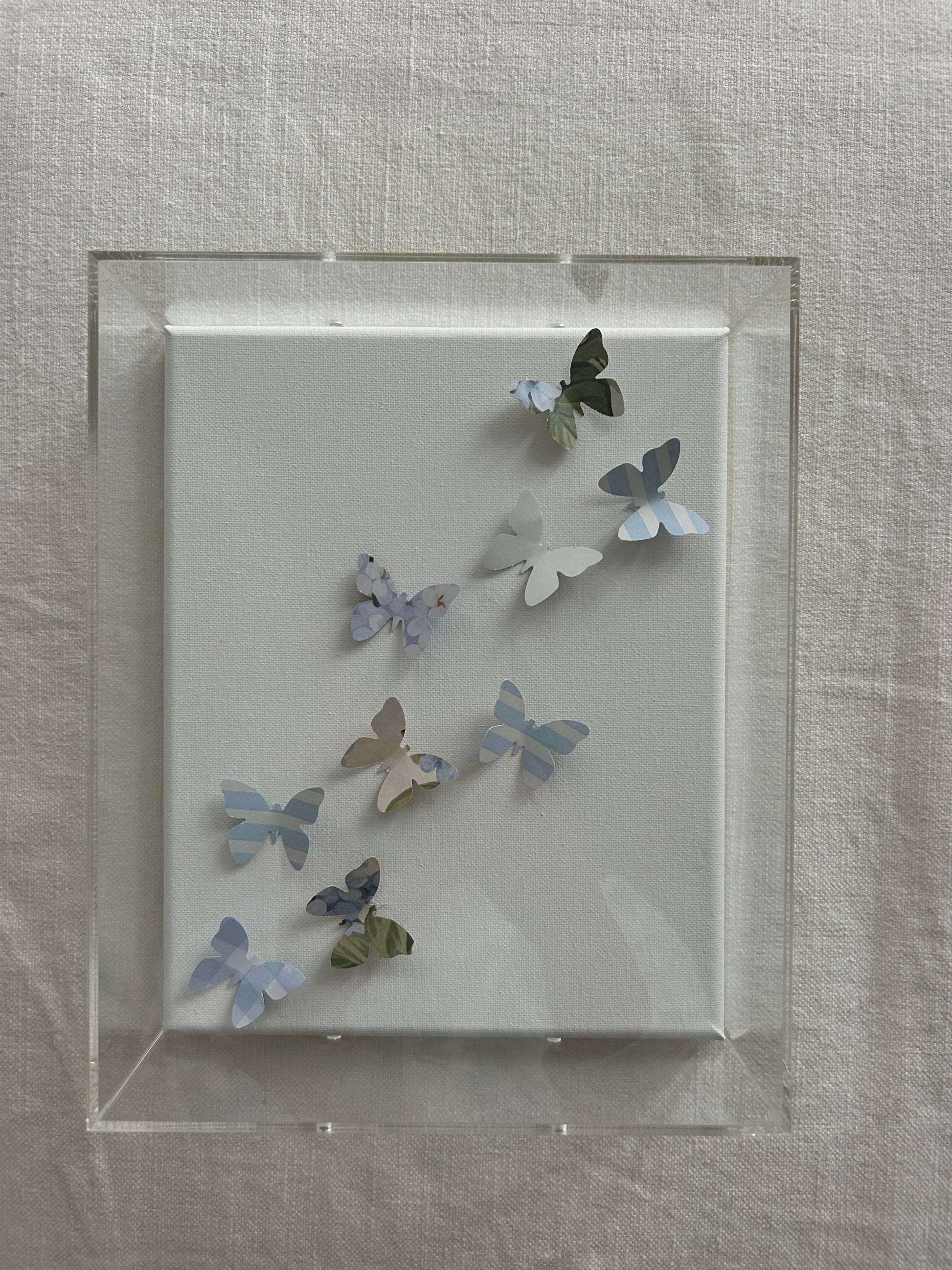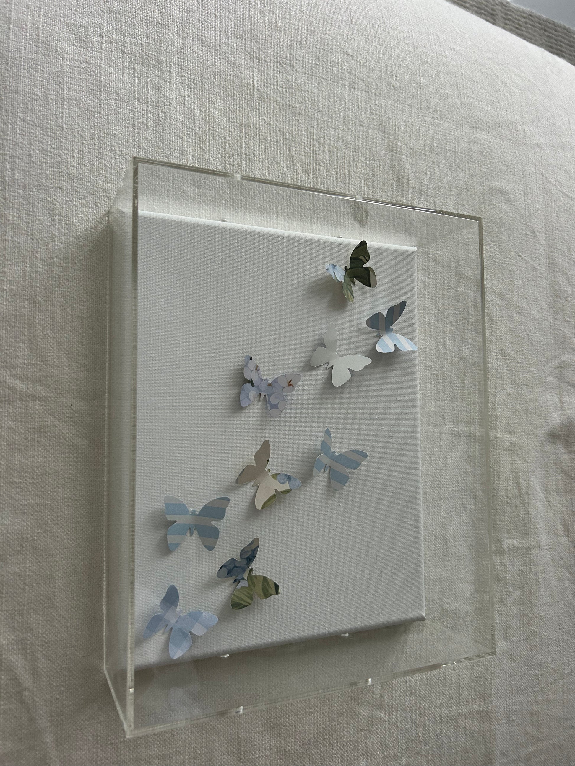 An 8x10 butterfly display from the Coastal Collection, encased in a polished acrylic frame. Each piece is a limited edition, made to order. Please allow 4–6 weeks for shipping.